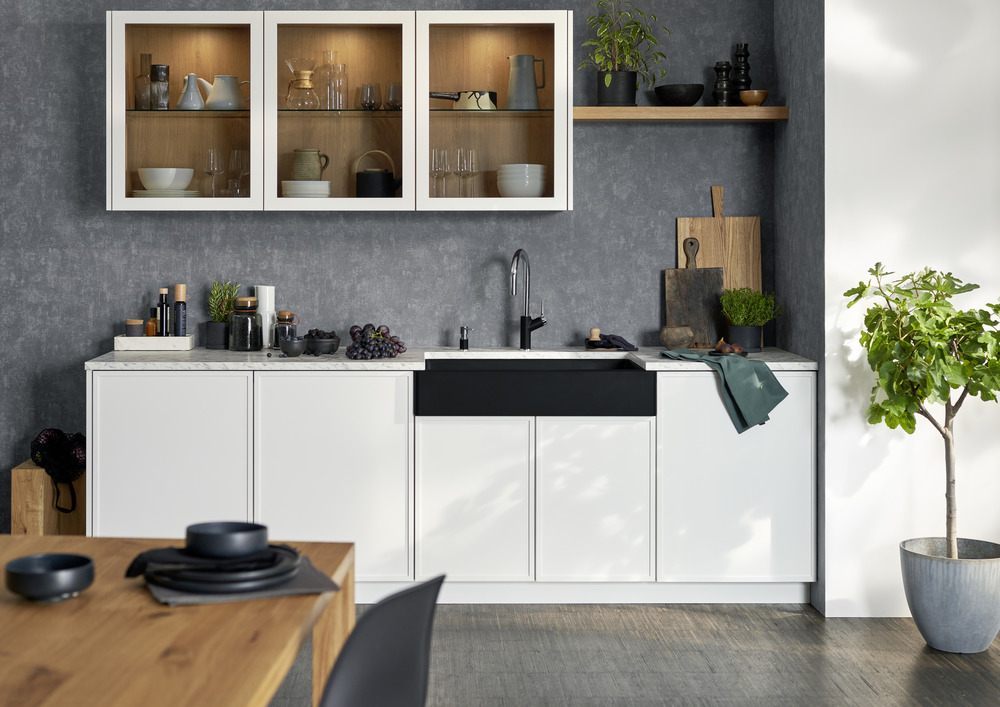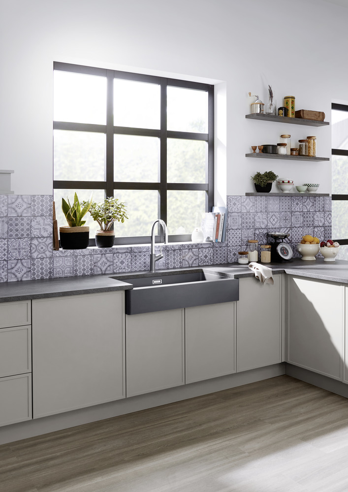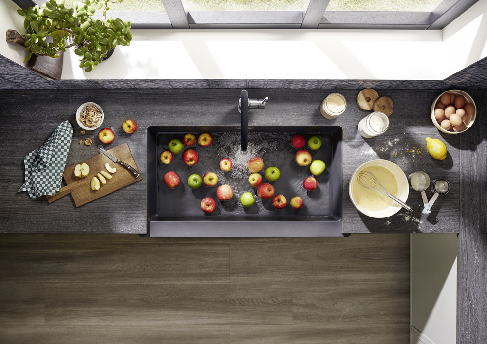 • Идеальное сочетание: фронтальная видимая стенка мойки подходит для шкафа шириной 90 см