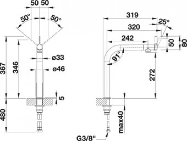 Высота излива: 27.2 см